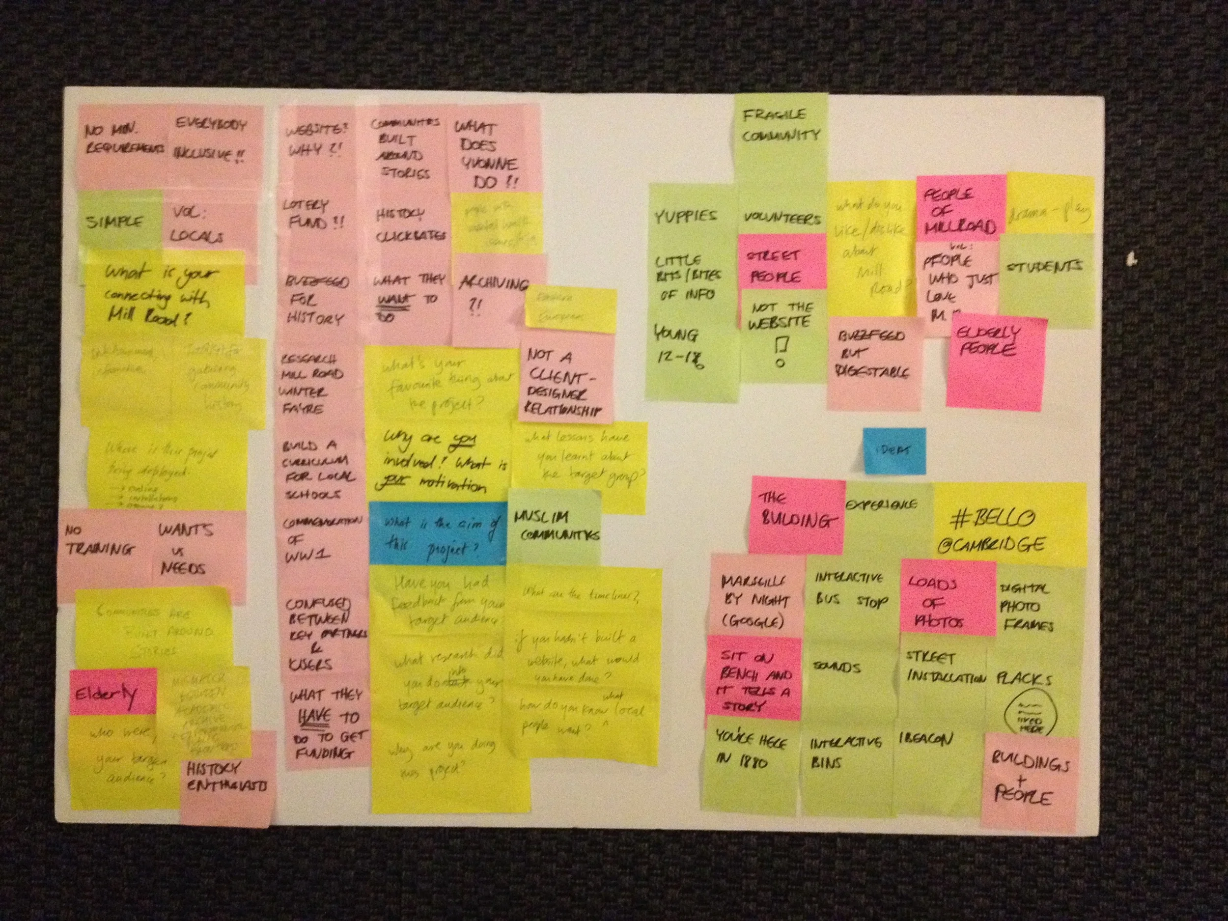 As part of the Design Practice module, on the Human Computer Interaction with Ergonomics course, I worked with a team to develop an interactive installation for our client, ‘Capturing Mill Road History’, based in Cambridge. The aim of this project was to engage local people with the history of Mill Road via technology.